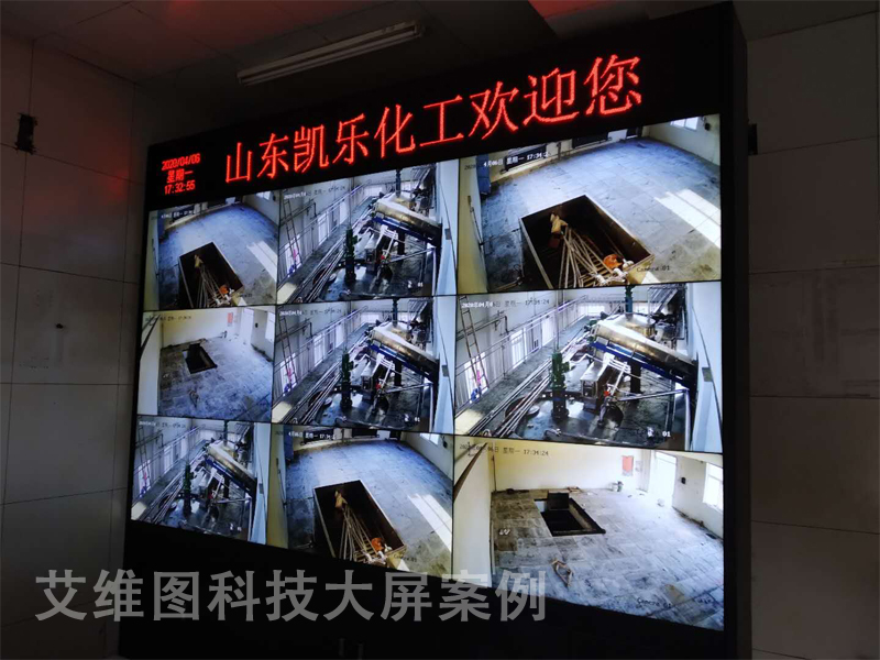 本次高清液晶大屏幕拼接屏監(jiān)控系統(tǒng)建設(shè),共包含9臺49寸LG拼接屏、1臺海康威視解碼矩陣、9單元落地機柜電視墻、1套3人位操作臺、1套P3.75單色LED顯示屏,9套高清信號線材等從,分別用在山東省棗莊市凱樂化工有限公司高清視頻監(jiān)控室。