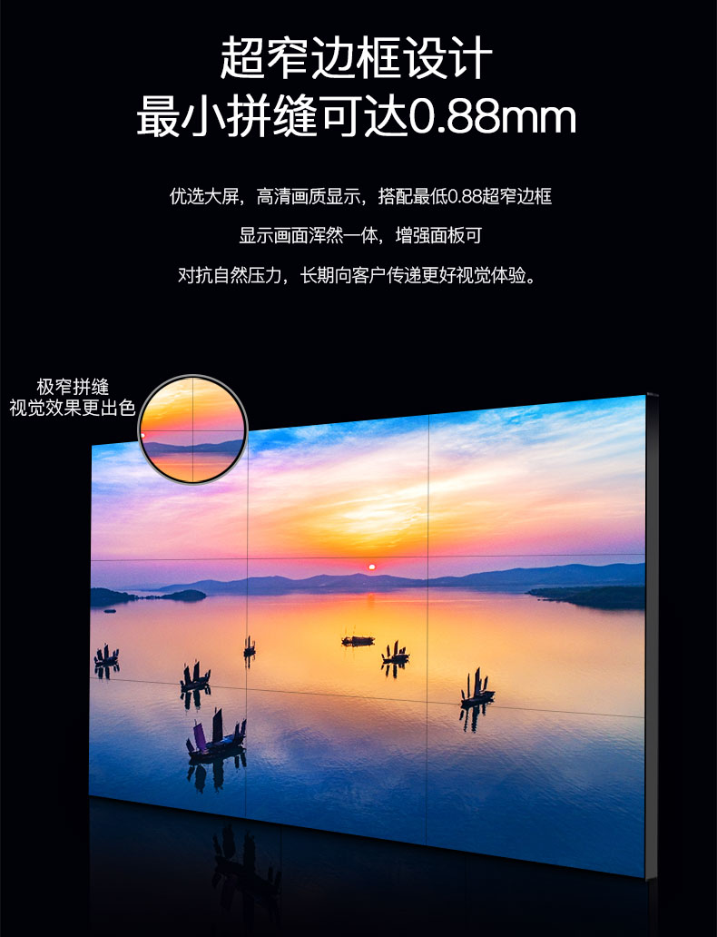 1、拼縫:由于液晶拼接屏是由多塊拼接屏面板所組成的。所以在各個(gè)面板之間會(huì)存在著一定的拼接縫隙。拼接縫隙當(dāng)然是越小越好。拼接縫隙如果太大了的話,則會(huì)影響視覺(jué)效果。