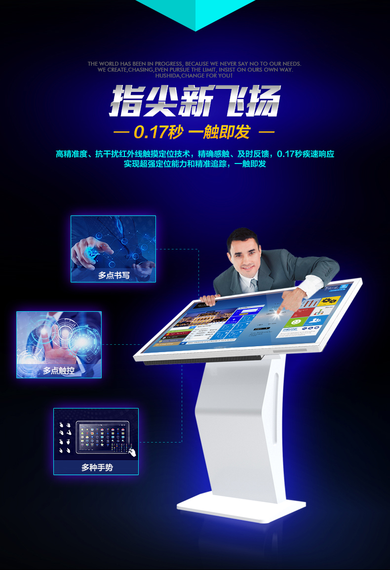 (1)采用目前最成熟的紅外觸摸屏,完美6點觸摸,支持手寫及多點手勢;